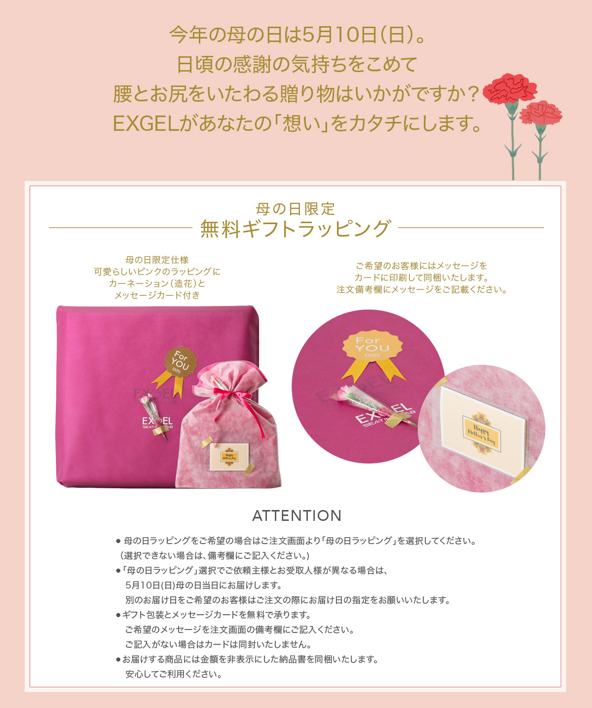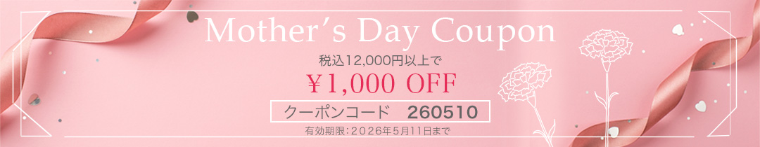 5月11日までに12,000円以上の商品をお買い上げのお客様は、母の日限定クーポンをお使いいただけます。