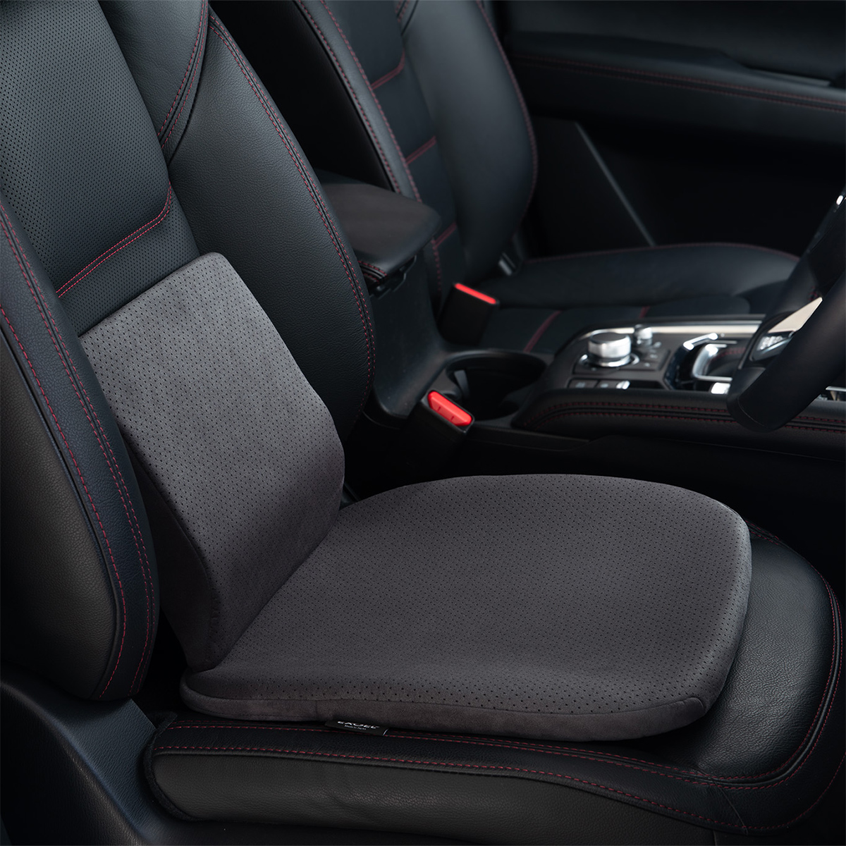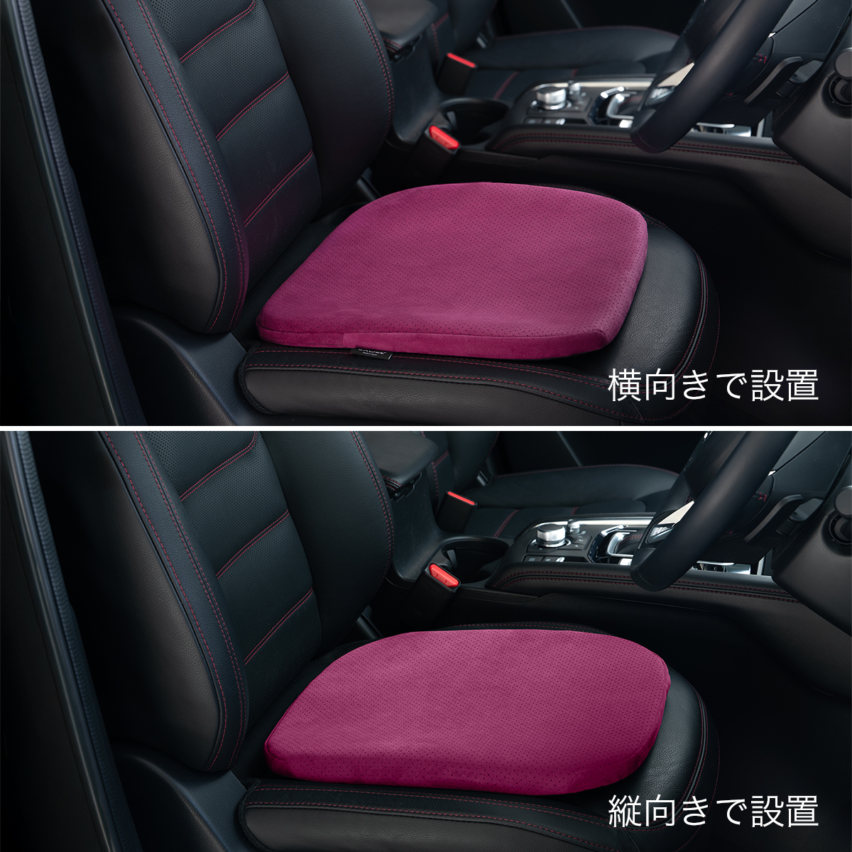 いつもの自動車用シートに置くだけで運転時間が快適に。カバー裏には滑り止めがついているため、乗り降りの際や運転中もずれにくいです。