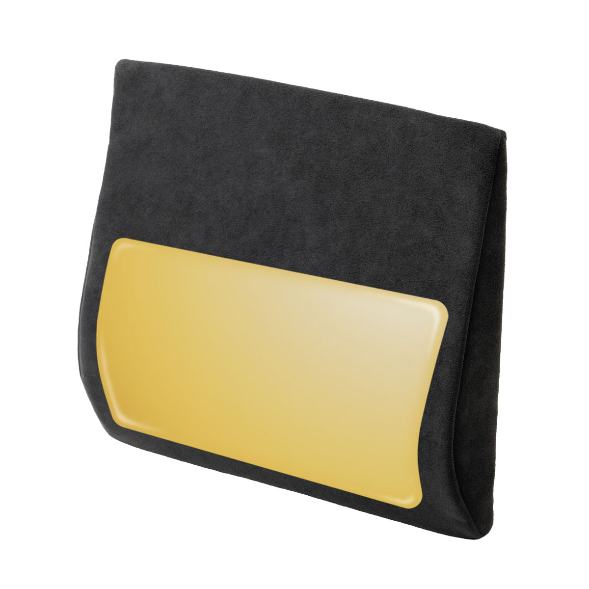 張り出しの大きいスポーツカーなどのシートにもフィットするコンパクトなデザイン。フラットなものからバケットシートまでさまざまな自動車用シートに装着できます。本革シートに馴染む上品なカバーの風合いが車内空間を彩ります。本物志向のドライバーへ贈る、ラグジュアリーモデルです。