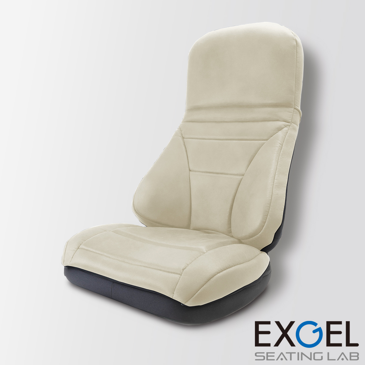 大きな背もたれで体全体を包み込み、お尻・腰が当たる位置にエクスジェルを配置することで、高級自動車シートのような座り心地を実現。