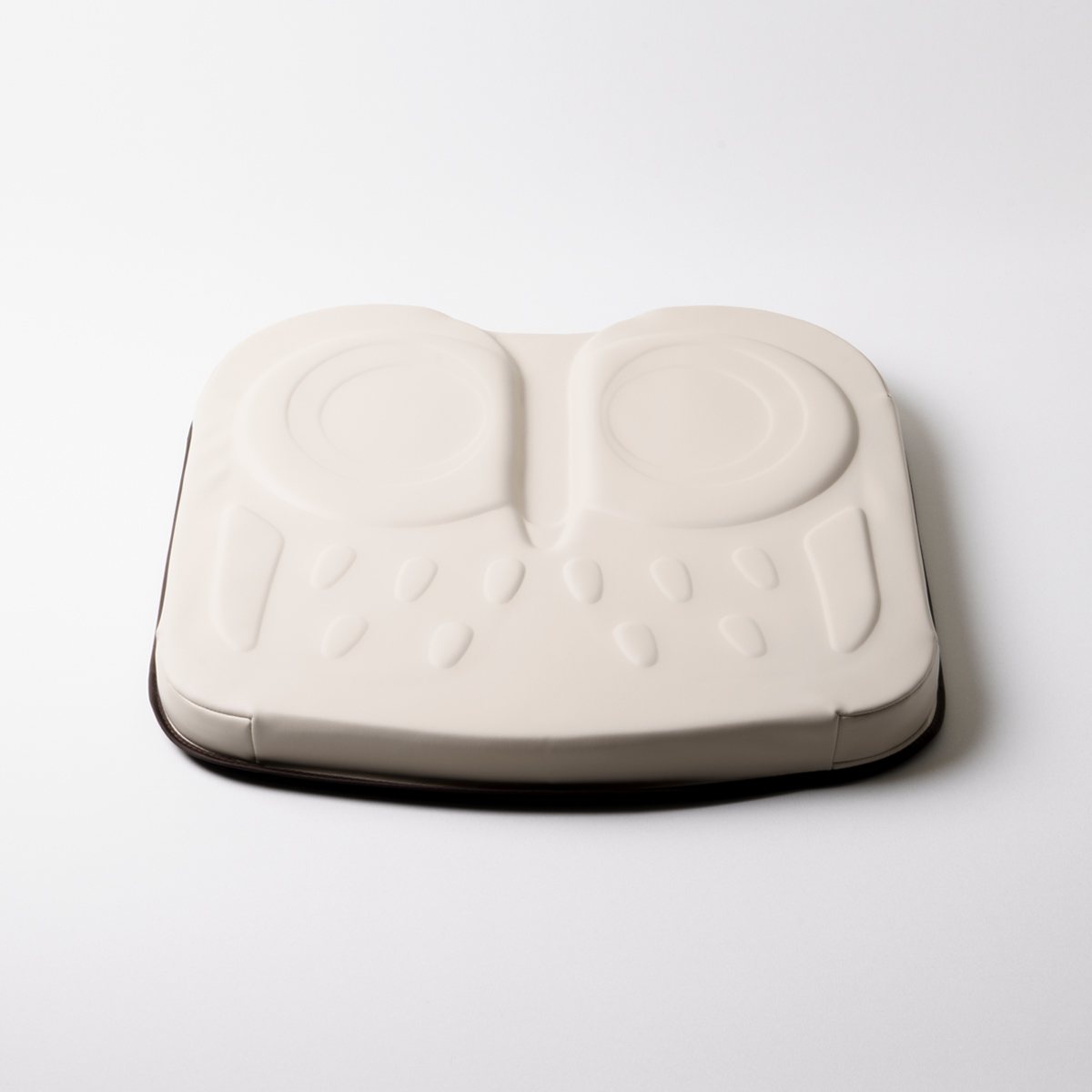最も圧力のかかる坐骨部をサポートするアウル・アイ、尾骨から仙骨にかけての圧力を軽減するアウルスリット、ひざ裏の当たりを和らげ足つき性もアップしたアウルステップなど、車椅子ご利用者の快適さを追求した機能がこのデザインに生かされています。