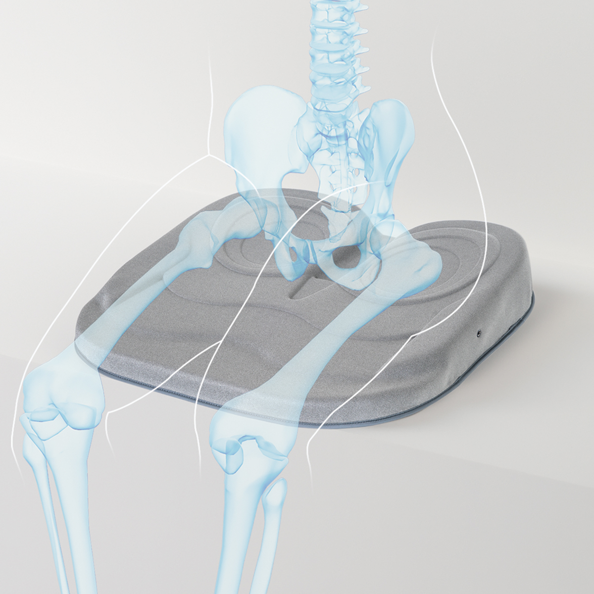 後方とサイドに厚みを持たせた立体形状が骨盤を正しい角度へ導きます。従来品より傾斜を3度プラスし 、お尻部分の隙間を埋めることで、更に骨盤をサポートしやすくなりました。