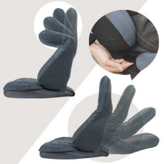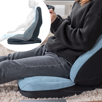 大きな背もたれが体全体を包み込み、お尻・腰が当たる位置にエクスジェルを配置することで、高級自動車シートのような座り心地を実現。 さらに独自の骨盤サポート構造が左右から腰を安定させます。 これまでの座椅子では味わえなかった、包み込まれるような心地よさをご体感ください。