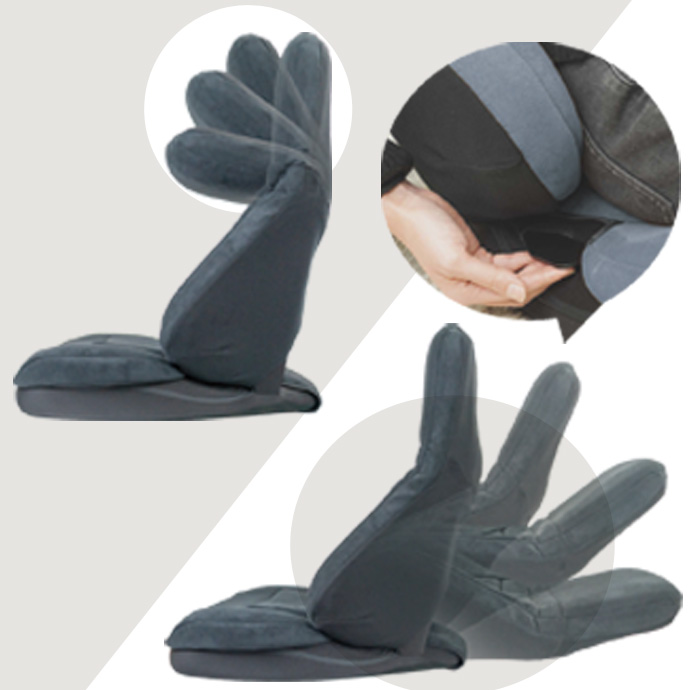 人は座っていても前後左右へと無意識に姿勢を変えます。 エクスジェルはその動きに寄り添い、縦方向の圧力だけでなく横方向のズレの力も流動的に分散。 座面に入ったおもちのようなエクスジェルが、自在に動きお尻の負担を軽減します。