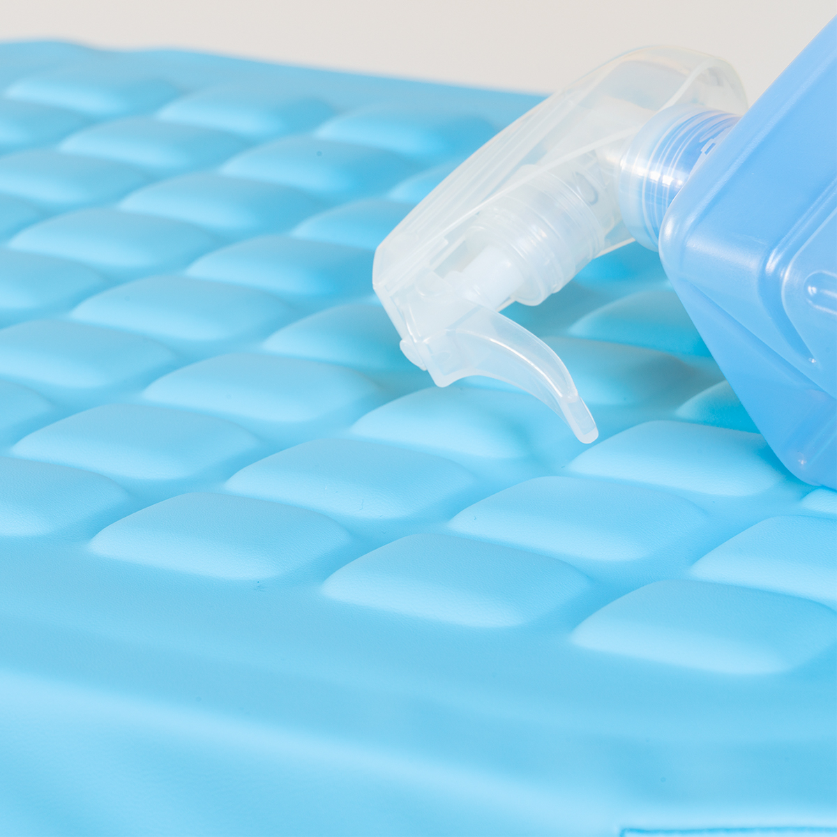本体はストレッチ性のある合成皮革だから飲み物をこぼしても拭くだけでキレイに。アルコール消毒もできるので気になるときは気軽に除菌できます。