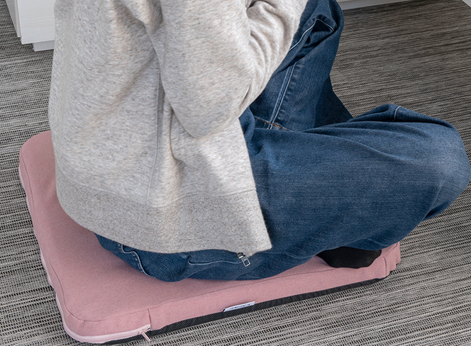 沈み込みにくいため床で座り続けてもしっかり姿勢を支えて快適に過ごせます。また縦横46cmのゆったりサイズなので正座やあぐらなど様々な座り方でご使用いただけます。