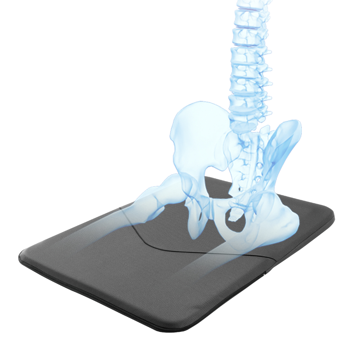 人は座っていても前後左右へ無意識に姿勢を変えます。エクスジェルはその動きに寄り添い、縦方向の圧力だけでなく横方向のズレの力も流動的に分散。ジェルの自在な動きが体の負担を軽減します。