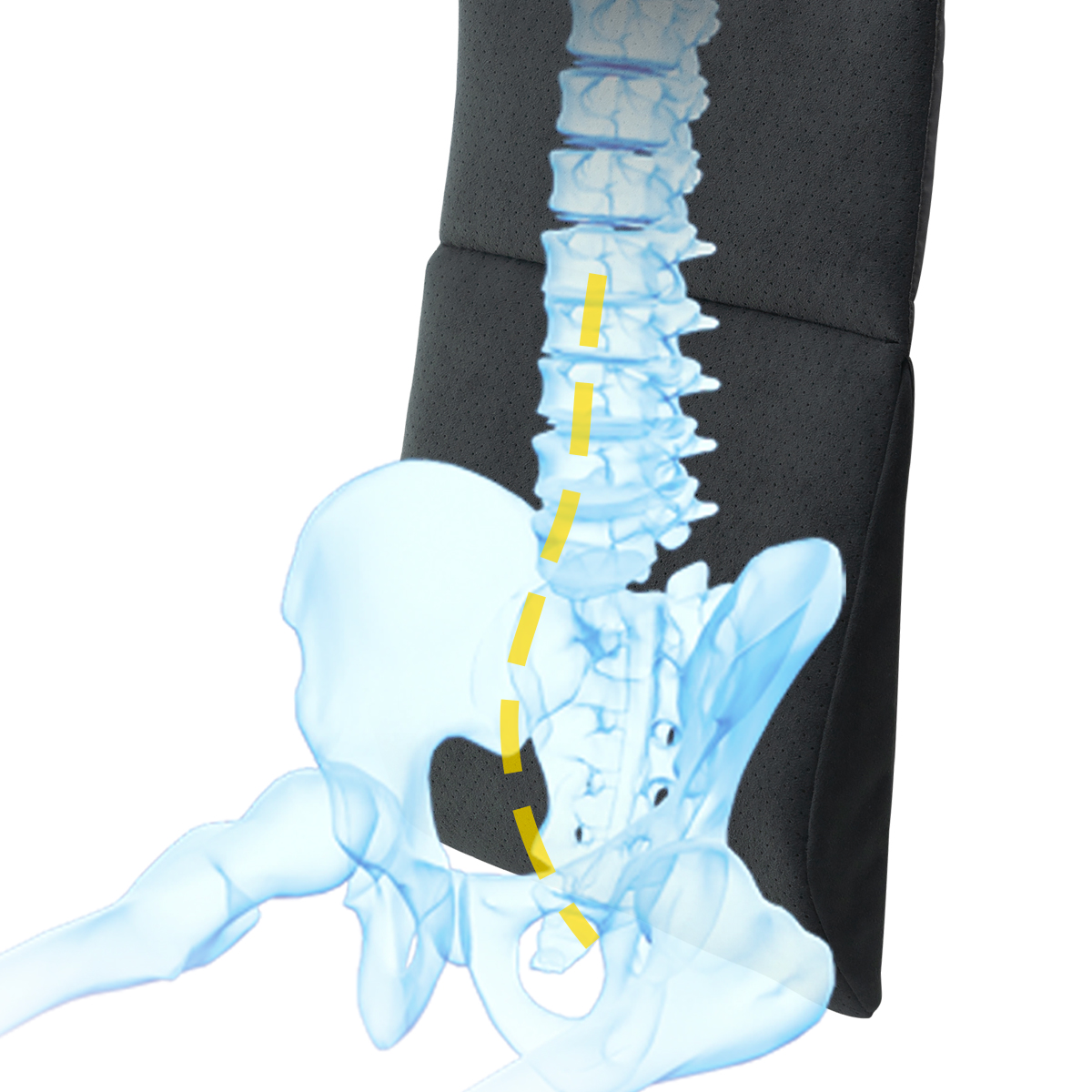 腰部に厚みを持たせた、身体のS字カーブにフィットするデザインで、背・腰を優しく守り、 身体にかかる負担を和らげます。