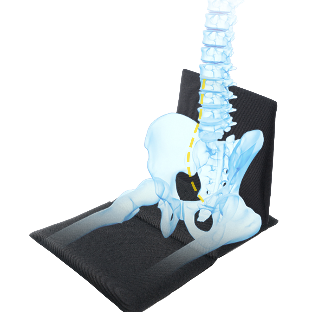 負担のかかりやすい腰とお尻部分に多くジェルを配置することで圧力を分散させ、背中のS字カーブを維持して自然に良い姿勢で座ることができます。 -