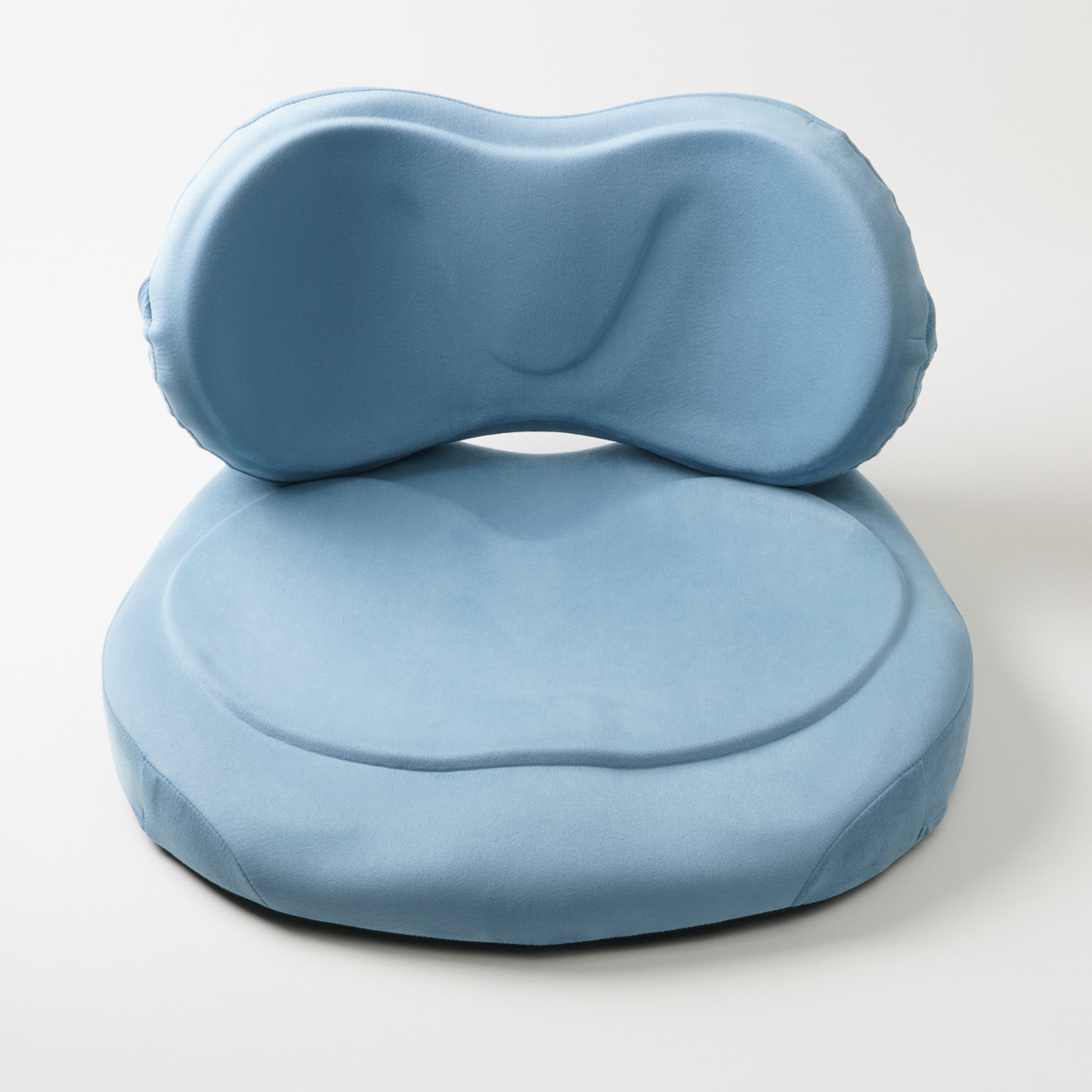 ハグカンフィは背中をソフトに支えながら、座面で体圧をしっかりと分散。 ダブルのサポート構造により、腰椎・仙骨・骨盤をしっかりと支えます。