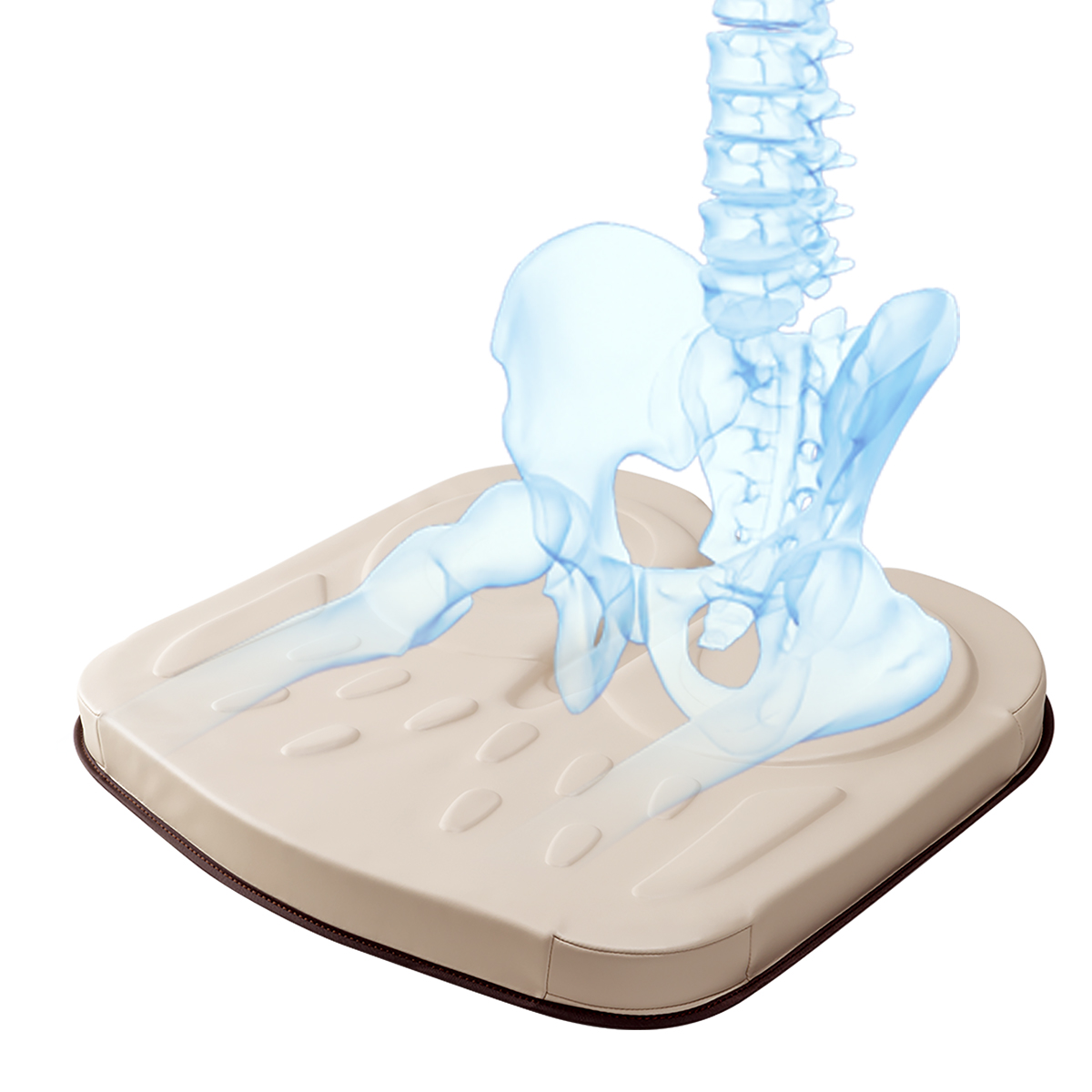 一般的なクッションは長時間座り続けていると時間とともに坐骨部に圧力が集中し、点で支える状況になり痛みが生じてしまいます。アウルケアはエクスジェルの体圧流動分散によって常に面全体で体を支えるから、快適さが持続するのです。