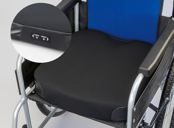 アウルケアは車椅子にセットするだけで誰でも簡単に使えます。専用カバーには前後がわかるタグがついているため誰でも安心して使用することができます。