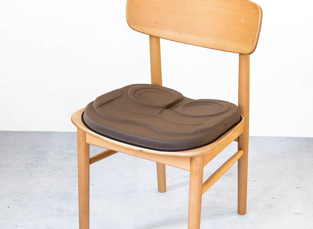 薄型でシンプルな設計は使う場所を選びません。いつもの椅子に置くだけでデスクワークなど前傾姿勢が続く作業でも腰の負担を和らげます。