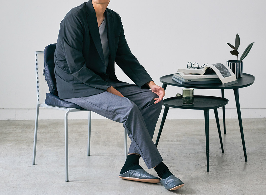 バッククッションとセットでの使用は体幹をさらに安定させ、やさしく包みこまれるような座り心地を実現します。