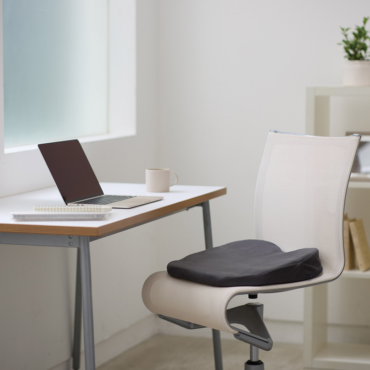 バッククッションとセットでの使用は体幹をさらに安定させ、やさしく包みこまれるような座り心地に。