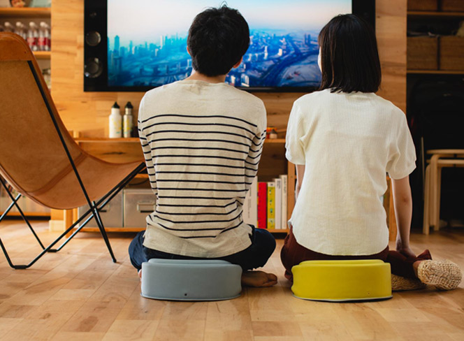 ローテーブルと相性抜群だから自然に正しい姿勢へと導き、お尻や腰の負担を軽減します。ティータイムやお食事、リモートワークなどの長時間の作業姿勢が続くときも快適です。