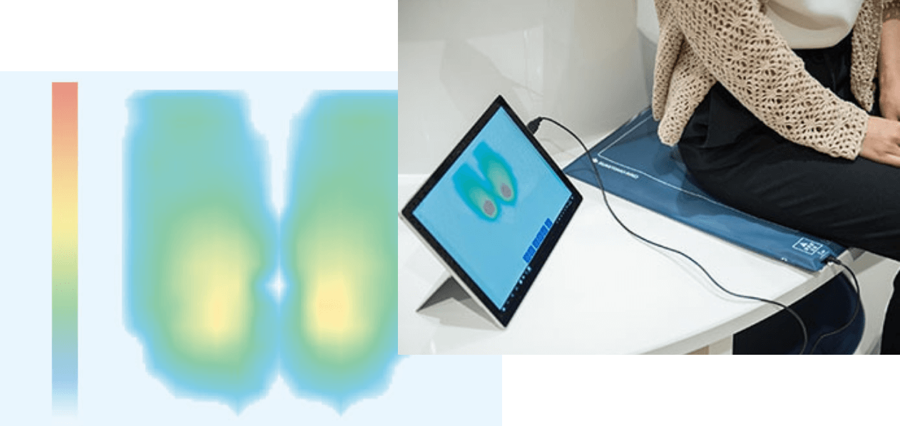座った際の圧力を測定し、体へのストレスやお客さまの座りの特徴を分析します。
